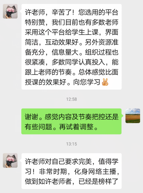 第四,加强教学纪律管理。通过导师群及时传达疫情期间的有关教学管理、专业实习、论文指导等政策要求,通过教师教学记录、学生考勤和反馈等方式检查上课情况,加强对远程教学纪律的管理。