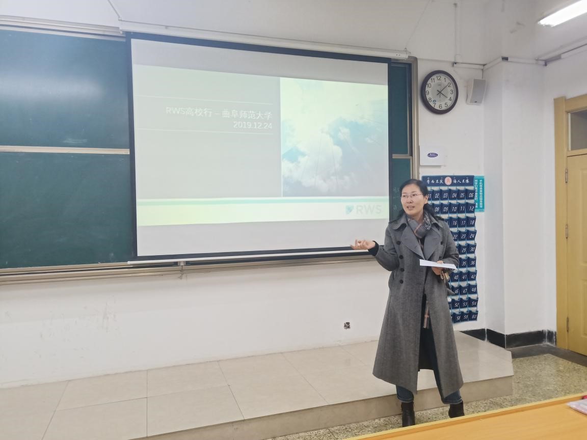 副院长夏云教授主持,MTI中心主任许家绍副教授、部分翻译系教师以及翻译硕士研究生和本科生参加了本次宣讲会。RWS日照分公司总经理助理兼高级项目经理张旭和RWS资源专员杨文丽担任主讲人。