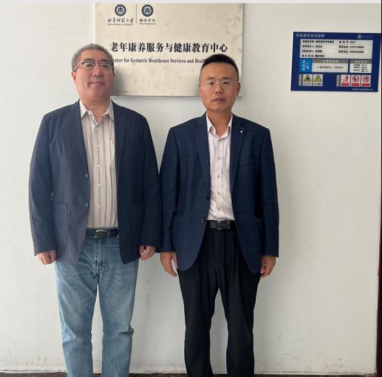 的学科建设与发展情况作了介绍。张广善董事长介绍了青岛仁者寿健康管理公司的基本情况及其在老年康养与康复照护研究及技术产品开发等方面取得的成果。座谈环节,双方就老年康复照护领域的最新动态进行了深入交流和探讨,并就老年康养研究成果转化、康复照护教材开发、实习基地共享等事宜达成了合作意向。