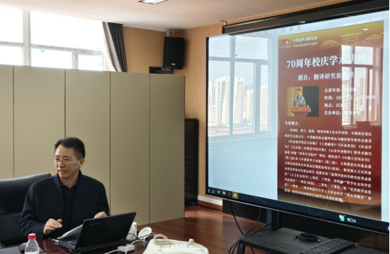 讲座中,周领顺教授围绕翻译理论构建、译者行为研究及人工智能时代翻译研究新方向展开系统阐释。他指出,理论的核心特征在于其系统性与科学性,既是研究视角,也是解决问题的工具,鼓励师生通过“丰富、细化与升华”推动理论创新。在译者行为研究方面,他提出“文本—社会—行为”三位一体研究范式,强调以人为本的译者互动与实践检验。面对人工智能挑战,周教授提出关注“经典性、时代性、前沿性”的重要性,积极回应技术变革。在互动环节,师生围绕AI是否冲击译者行为研究、翻译研究如何与数字人文结合、误译现象的研究价值等问题踊跃提问。周教授就以上提问做了深入浅出的回答,进一步拓宽了大家的思路。